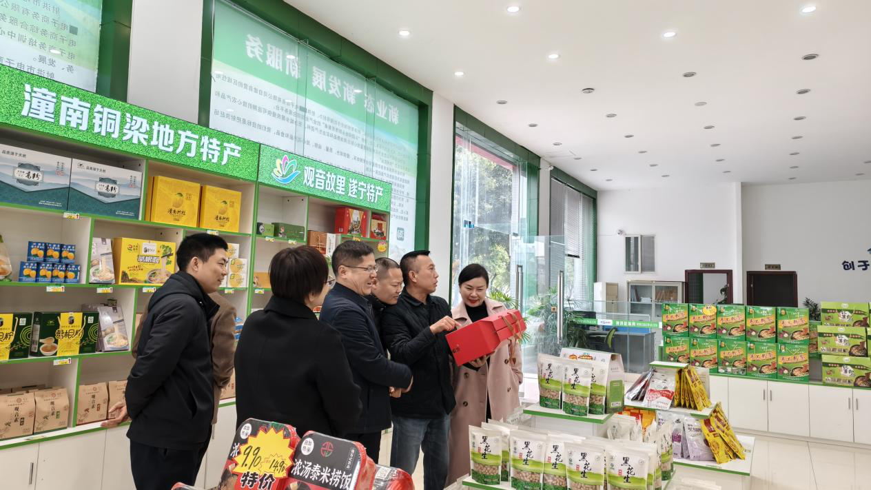 遂宁市供销社四级调研员钱致远、遂宁市供销社综合科科长周红,射洪市供销社理事会主任滕云及相关人员陪同调研。